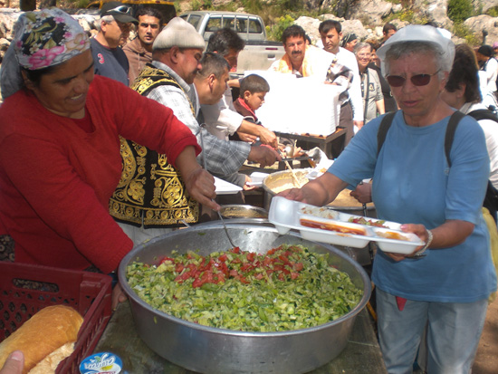 , gezinin rehberliğini üstlenerek yürüyüşe katılanlara bilgi verdi. 11 kilometrelik yürüyüşün bitiminde Patara Muhtarı Arif Otlu, tavuk kavurması, pilav, salata ve içecek ikramında bulundu. Yürüyüşte yöresel sanatçılar türkü de söyledi.