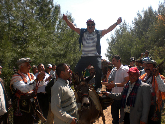 , Kaş Belediye Başkanı Abdullah Gültekin, belde belediye başkanları, daire amirleri ve müdürleri de katıldı. Yürüyüş grubunun önünde iki deveyi çeken eşeğin üstündeki Kalkan Belediye Başkanı Ömer Saim Karakurt