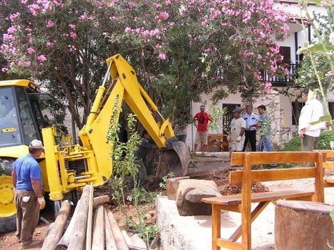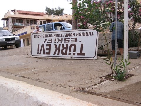 Kalkan Belediyesi'nin (Mustafa Şalvarlı döneminde), Türk Evi'nin Güneş Kollektörlerini söküp attığı an.. Tabelası indiriliyor, Güneş Kollektörleri kaldırılıyor... FOTOĞRAFLAR: Önder ELİTEZ